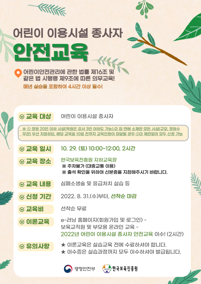 #한국보육진흥원 #보육교직원교육 #안전교육 #이러닝 #보육시설 #어린이안전 #보육교사 #온라인교육 #실습교육 #수료증발급