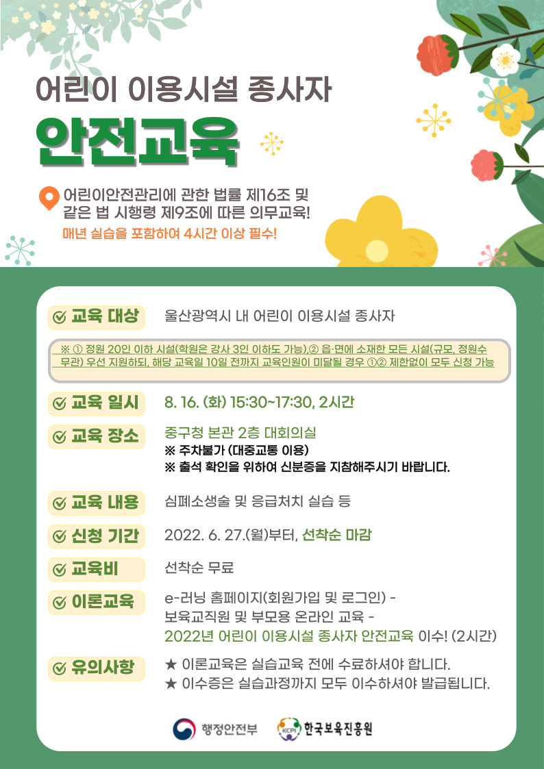 - 온라인 이론교육 2시간 - 기초안전관리 및 응급처치 이론